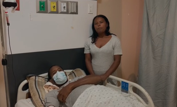 Yaniris Cabrera, quien reside en el municipio de Altamira, provincia Puerto Plata, explicó que actualmente su esposo se encuentra ingresado en el Hospital José María Cabral y Báez de Santiago y que su situación de salud es crítica.