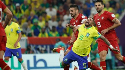 EL NUEVO DIARIO, DOHA.- Con gesto serio se retiró Neymar del Brasil-Serbia tras sufrir un golpe y fue sustituido a diez minutos del final, con cara de pocos amigos.
