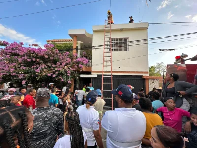 El cuerpo del menor fue levantado del segundo piso por la unidad de rescate del Cuerpo de Bomberos de Baní con la colaboración de la brigada de emergencias de Edesur Dominicana.