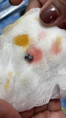 En un primer momento, la madre pensó que se trataba de una quemadura superficial provocada por una chispa de un poste de luz que estaba lanzando descargas eléctricas en ese instante. Sin embargo, al limpiar la herida, notó algo extraño alojado bajo de la piel del menor.