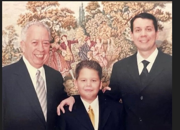 La publicación fue compartida junto a dos fotografías, una en la que aparece junto a su abuelo y otra en la que se le observa junto a su padre y Salvador Jorge Blanco.