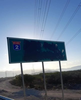 EL NUEVO DIARIO, AZUA.- El letrero que indica la entrada hacia Azua y el trayecto del sur profundo fue pintado de negro este viernes provocando asombro de todos.