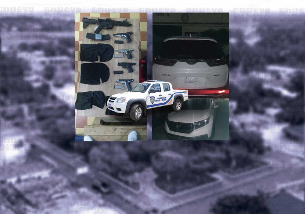 EL NUEVO DIARIO, SÁNCHEZ RAMÍREZ.- Agentes de la Policía Nacional de puesto en Cotuí apresaron la noche del miércoles a cinco presuntos delincuentes que se desplazaban en una yipeta, en cuyo poder se ocuparon cinco armas de fuego, incluyendo un fusil, cargadores, pasamontañas y otras evidencias.
