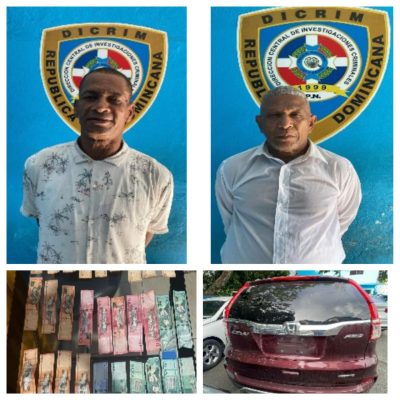 EL NUEVO DIARIO, PUERTO PLATA. – Agentes policiales adscritos a la Dirección Regional Norte apresaron este jueves a dos hombres acusados de estafar a un ciudadano con la promesa de entregarle supuestos “números ganadores” de la lotería, tras recibir de este la suma de RD$38,000 pesos en efectivo y emprender la huida.