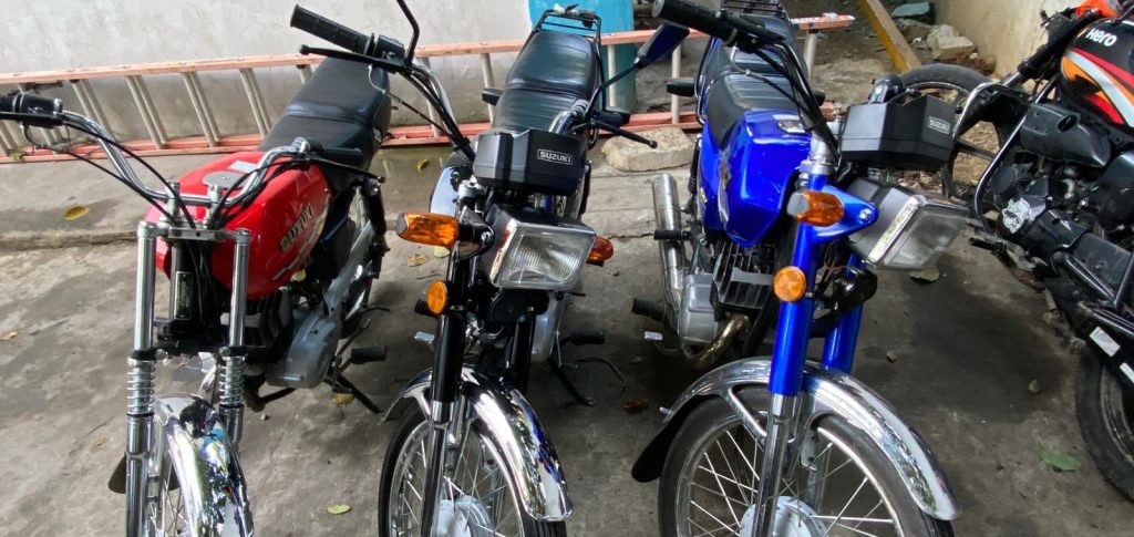 En el lugar fueron encontradas tres motocicletas marcas Suzuki, modelo AX100 y dos chasis, sin sus accesorios, así como también varias piezas de motos desmanteladas.