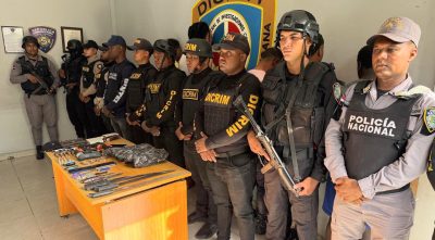 EL NUEVO DIARIO, BARAHONA –La Policía Nacional detuvo este jueves a ocho personas durante un allanamiento en el municipio de Enriquillo, Barahona por posesión ilegal de armas, municiones, sustancias narcóticas, pertrechos militares y otros objetos vinculados a actividades ilícitas.