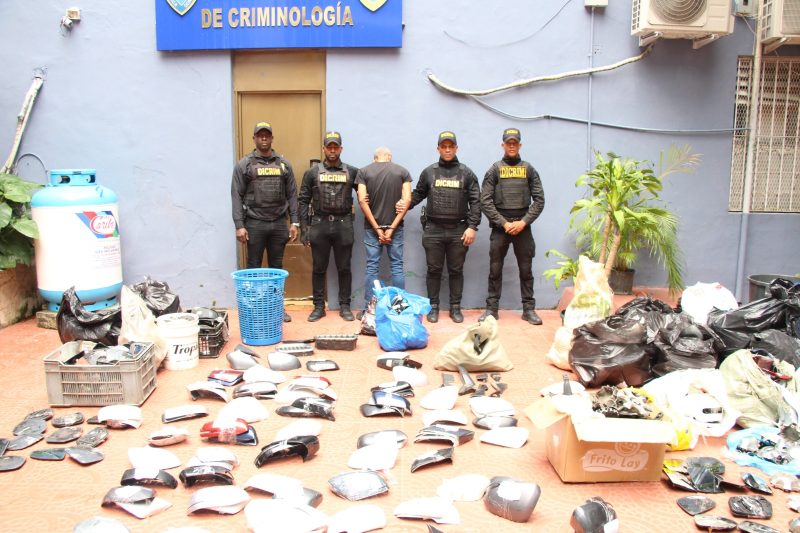 Durante el operativo, ejecutado por miembros del Departamento de Crímenes y Delitos Contra la Propiedad (Robo), se incautó una gran cantidad de piezas, incluyendo caperuzas, tapas de bocinas, espejos retrovisores, logos y centros de vehículos.