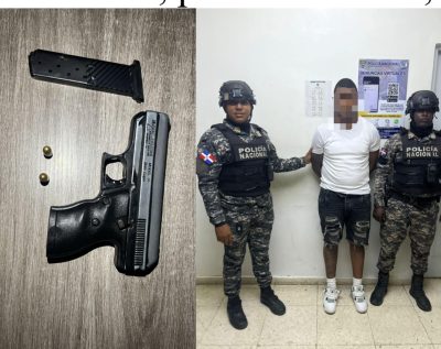 En el barrio Majagual, Ernesto Aquino Quezada, de 43 años de edad, fue detenido con una pistola sin documentos, un cargador y varias cápsulas. Una segunda arma de fuego ilegal fue incautada en el sector Sabana Centro.