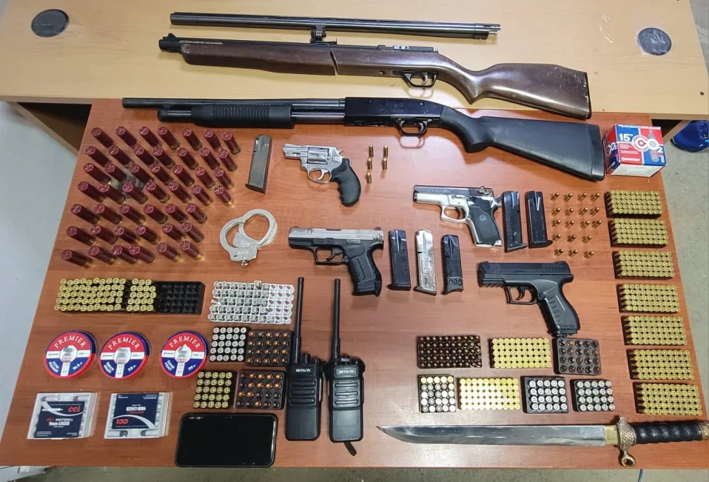 Durante la operación se ocuparon una escopeta marca Maverick, calibre 12 mm, 46 cartuchos para la misma, un revolver marca Taurus, calibre 38 mm, 38 cápsulas calibre 38mm, un rifle modelo 397, con tres estuches de plomo, un cargador 9mm, una esposa de mano, una porción de un vegetal presuntamente marihuana y un teléfono celular.