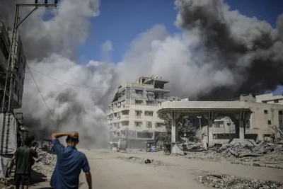 Tras los bombardeos, los gazatíes se sientan sobre los restos de sus casas, con las manos en la cabeza, mirando el horizonte de destrucción; entre el polvo y el silencio se preguntan lo mismo que Yahia, mientras otros suben sobre los escombros buscando a más víctimas.