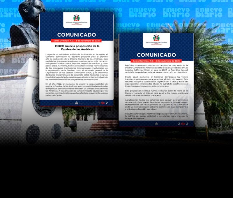 EL NUEVO DIARIO, SANTO DOMINGO. – El Gobierno de la República Dominicana anunció este lunes la postergación para el próximo año de la Décima Cumbre de las Américas, luego de un cuidadoso análisis de la situación política y social en la región.