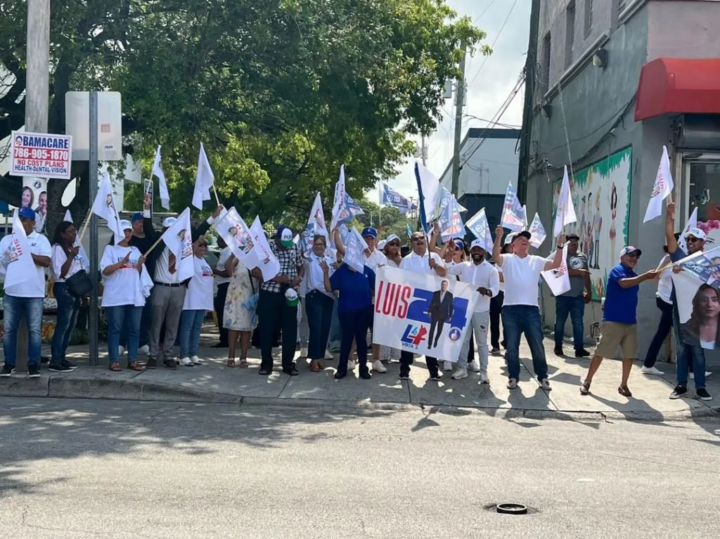 Desafiando altas temperaturas del reciente domingo, Día de las Madres en Estados Unidos, ocuparon parte de la movida arteria comercial de la 17 Avenida en el barrio de los dominicanos, Allapattah en Miami, cargados de emoción política, promoviendo 4 años más para el presidente Luis Abinader, y demás en su boleta electoral, incluidos la diputada Adelis Olivares y Edward Cruz que optan por ser favorecidos con el voto por la reñida Circunscripción número 2 que abarca Florida y otros puntos en la diputación de Ultramar, con atractivos programas para la diáspora, de acuerdo ambos contrincantes.