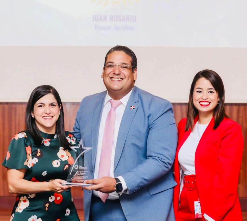 De acuerdo a un comunicado enviado este viernes, el también catedrático universitario Rosario Gratereaux, recibió de manos de la directora de ProDominicana, Biviana Riveiro, la estatuilla de reconocimiento especial por sus aportes como asesor jurídico ante dicha institución.