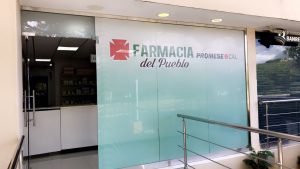 La farmacia está ubicada en el edificio Padre Arroyo justo al lado del Banco de Reserva.