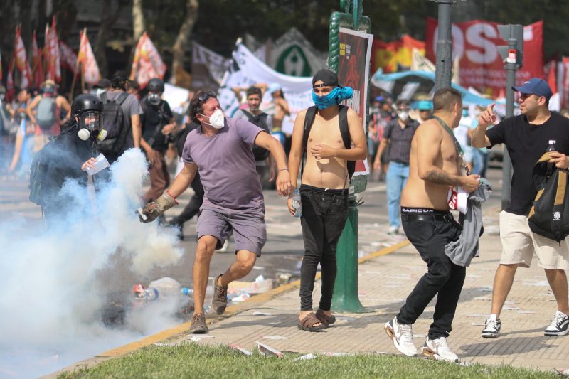 La tensión fue creciendo y los alrededores del Congreso se convirtieron en una batalla campal. Las fuerzas de seguridad dispersaron a los manifestantes de la plaza, a la que acudieron algunos grupos después, sobre las 18:00 hora local (21:00 GMT).