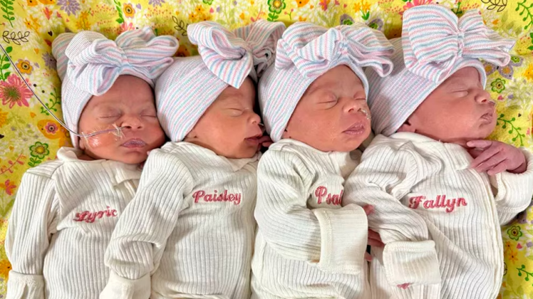El nacimiento se realizó mediante una cesárea a las 32 semanas de gestación, con la llegada de los cuatro bebés saludables, a las que nombraron Lyric, Fallyn, Paisley y Psalm.