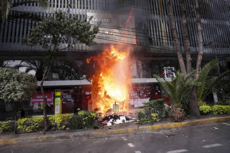 Algunos manifestantes prendieron fuego a tres sofás en el vestíbulo debido a que, según fuentes de la organización convocante, no consiguieron hablar con la directora de Censida, Alethse de la Torre Rosas, pese al compromiso de un representante de la Secretaría de que así sería.