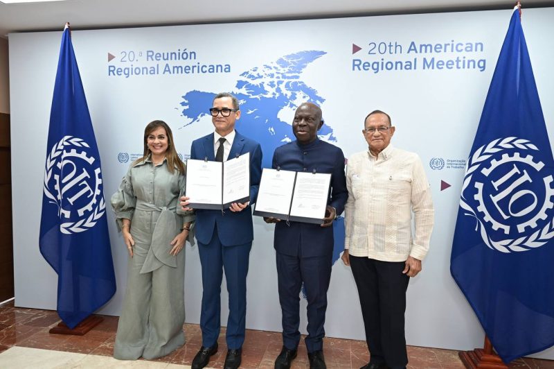 EL NUEVO DIARIO, SANTO DOMINGO.- En el marco de la 20ª Reunión Regional Americana de la Organización Internacional del Trabajo (OIT), celebrada en Punta Cana, el ministro de Trabajo, Eddy Olivares, entregó en nombre del Gobierno dominicano, al director general del organismo, Gilbert Houngbo, el instrumento de ratificación del Convenio 156 de la OIT, sobre los trabajadores con responsabilidades familiares.