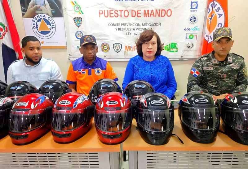 EL NUEVO DIARIO, SANTIAGO. – En un operativo preventivo coordinado por el Ministerio de Interior y Policía, la viceministra Ángela Jáquez y el coordinador regional norte de Seguridad Preventiva, Jhonattan Erick, hicieron entrega de cascos protectores a los voluntarios de la Defensa Civil que fueron debidamente citados para esta acción.