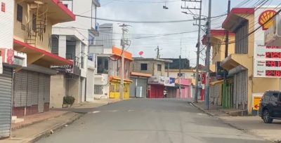 Desde tempranas horas de la mañana, las calles se observan desiertas, los establecimientos comerciales mantienen sus puertas cerradas y el tránsito ha sido reducido al mínimo. Solo se observa el paso de vehículos de emergencia y miembros de la Policía Nacional, quienes custodian puntos estratégicos para garantizar el orden.