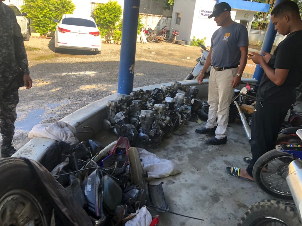 EL NUEVO DIARIO, SÁNCHEZ RAMÍREZ.- La Policía Nacional informó este sábado que recuperó 10 motocicletas, 17 máquinas de motores, cierras y piezas de automóviles que estaban en manos de Leonardo Mena Acevedo, conocido como Leíto, un reconocido antisocial de Cotuí que se entregó a las autoridades.