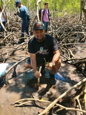 «Desde que iniciamos hace unos años hemos reforestado más de 20,000 plántulas de mangle rojo en las riberas del río Caño Hondo en Los Haitises. Este día replantamos con voluntarios del colegio bilingüe New Horizons, en coordinación con el encargado nacional de Medio Ambiente de la Red Mundial de Jóvenes Políticos en RD», añadió.