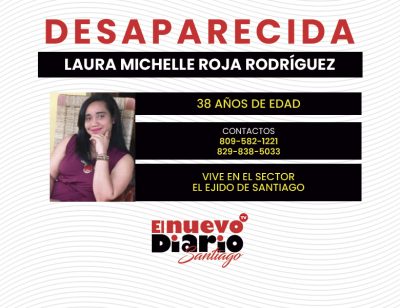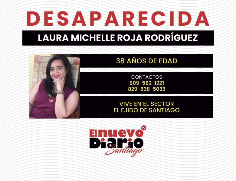 EL NUEVO DIARIO SANTIAGO.- Familiares reportaron este lunes, desaparecida a Laura Michelle Roja Rodríguez, de 38 años de edad, quien supuestamente está padeciendo de problemas depresivos.