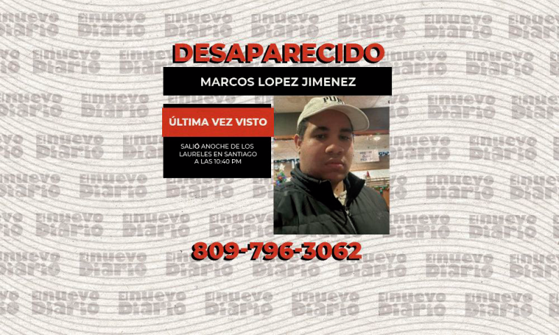 EL NUEVO DIARIO, SANTIAGO.– Reportaron como desaparecido a un hombre identificado como Marcos López Jiménez, quien salió la noche de este lunes de Los Laureles, Santiago, con destino aún desconocido.