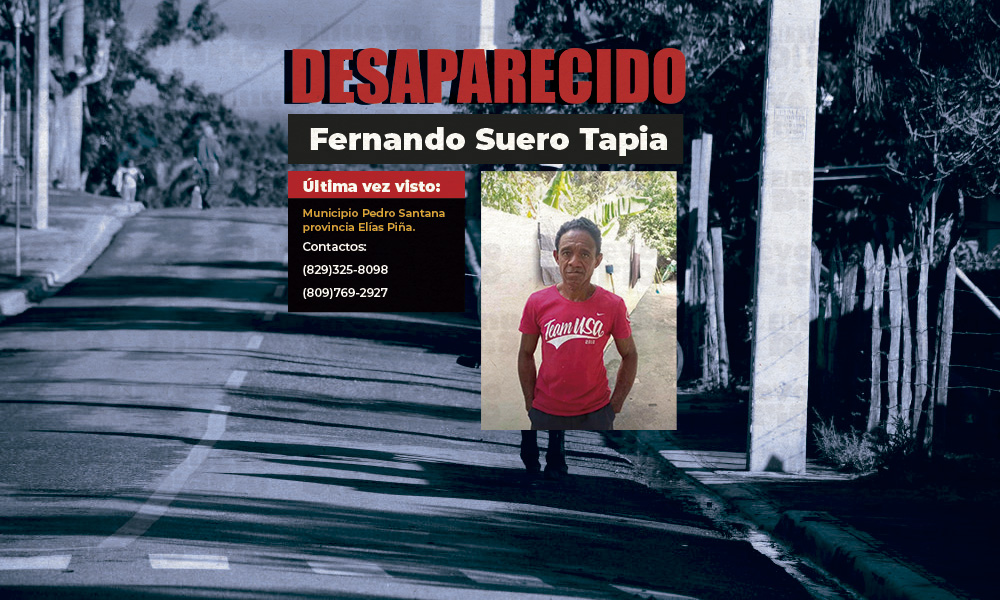 Cualquier información que pueda ayudar a localizar a Fernando Suero Tapia favor comunicarse con las autoridades locales o a contactar a la familia a través de los números (829) 325-8098 /(809) 769-2927.