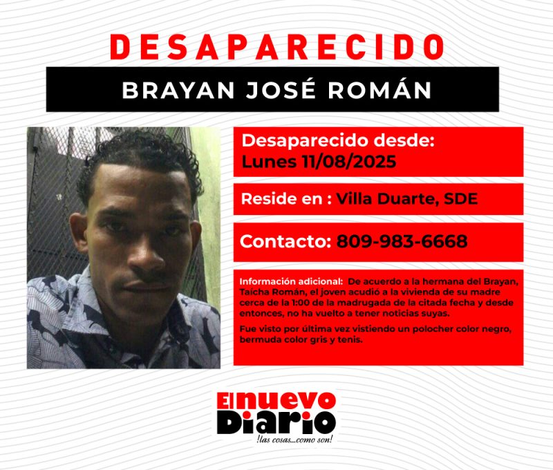 Para cualquier información sobre el paradero de Brayan, su hermana ofreció su número de teléfono: 809-983-6668.