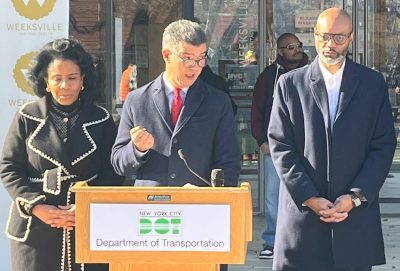 Los comisionados de Transporte (DOT), Ydanis Rodríguez; de la Oficina de Asuntos Internacionales de la alcaldía, Edward Mermelstein; y de Asuntos de Inmigrantes de la Alcaldía, Manuel Castro, develaron los mismos durante un acto celebrado este lunes en la Sexta avenida con la calle 42 en Manhattan.