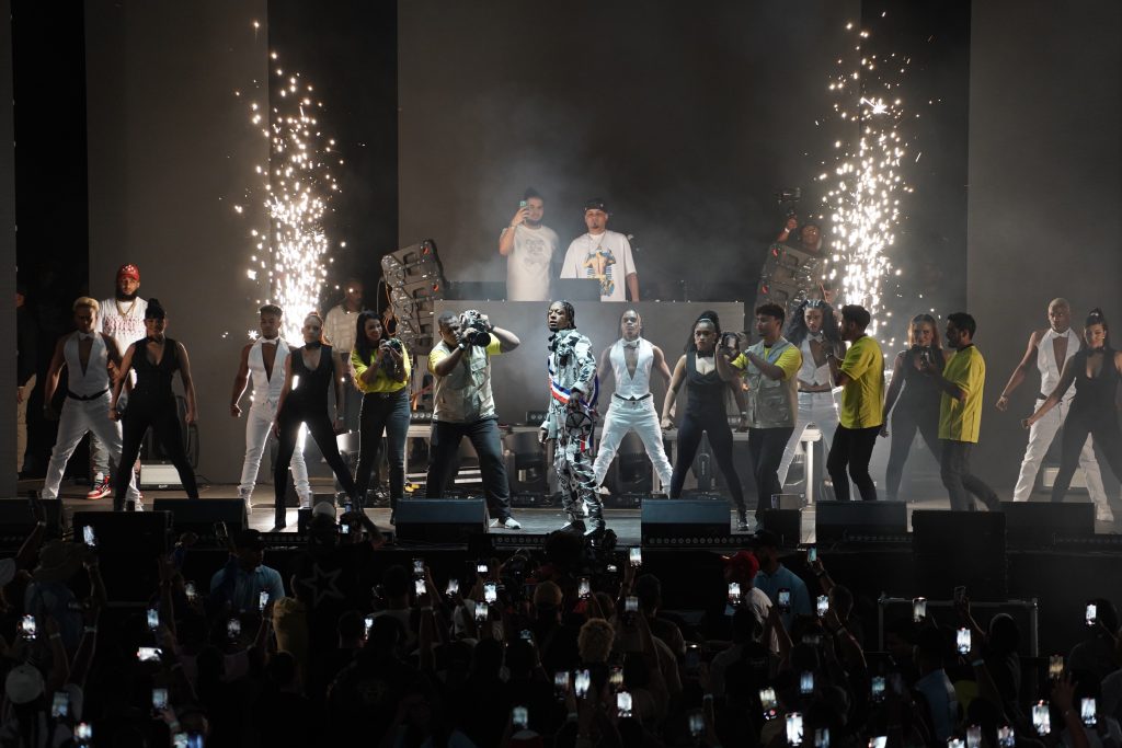 Minutos más tarde, las pantallas que adornaban la tarima presentaron un resumen de la historia del género urbano en el país con imágenes del dúo Sandy y Papo, pasando por Don Miguelo y Lápiz Conciente hasta llegar a él.