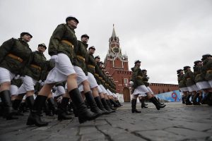 La Plaza Roja acogió anoche un ensayo del desfile con ocasión del 77 aniversario de la victoria soviética sobre las tropas hitlerianas que este año coincidirá con la «operación militar especial» en Ucrania.