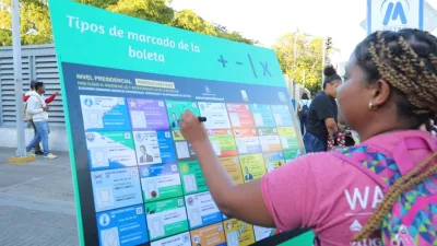 En la parte frontal de las estaciones, los activistas aprovecharon el flujo de personas que utilizan diariamente el Metro, estimado en unos 60 mil en horario pico, a los cuales utilizando una pizarra en la que colocaron una boleta electoral ampliada, les enseñaron cómo votar por Leonel Fernández en las elecciones presidenciales que se celebrarán el 19 de mayo.