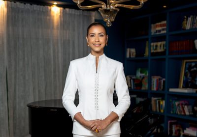 Selinée Méndez llevó un clásico peinado realizado por la estilista Lucy Perrone, que deja ver completamente el rostro, con un maquillaje discreto enfatizando sus hermosos rasgos, ejecutado por Lydiana Rodríguez. Para completar el look total, la diputada optó por modernas piezas de ámbar y oro de la talentosa joyera dominicana Laura Tosato.