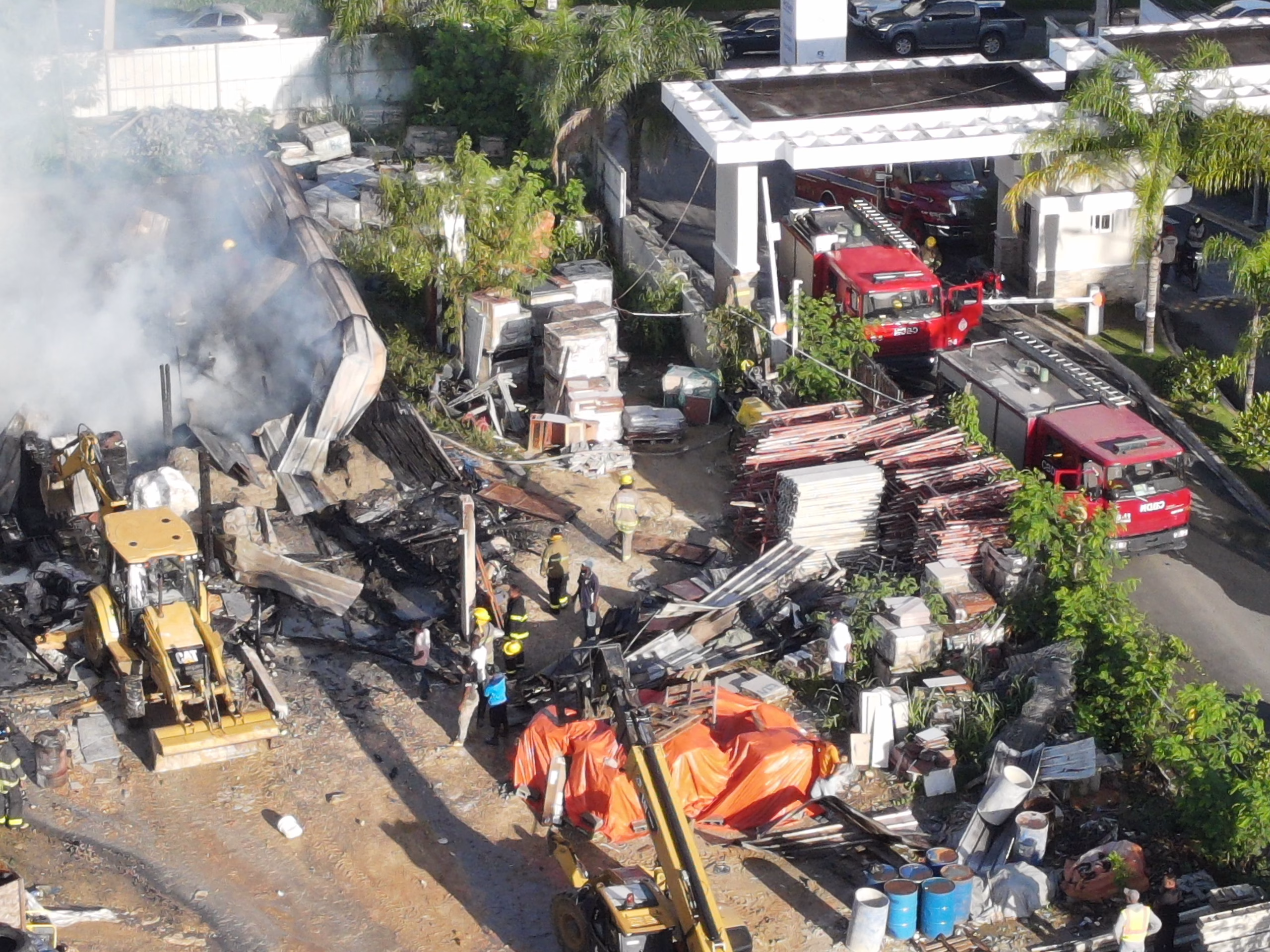En el evento se encuentran laborando 15 camiones del Cuerpo de Bomberos del DN; dos ambulancias de la Dirección de Servicios de Atención a Emergencias Extrahospitalarias (DAEH); y dos unidades de la Policía Nacional. Además, fue requerido el apoyo de Edesur y el equipo de Drones del 9-1-1.