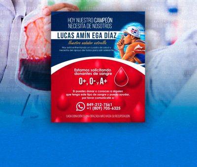EL NUEVO DIARIO, SANTO DOMINGO. – Familiares y allegados del destacado nadador dominicano Lucas Amín Ega Díaz han solicitado con urgencia la donación de sangre, debido a un delicado cuadro de salud que requiere el apoyo solidario de la población.