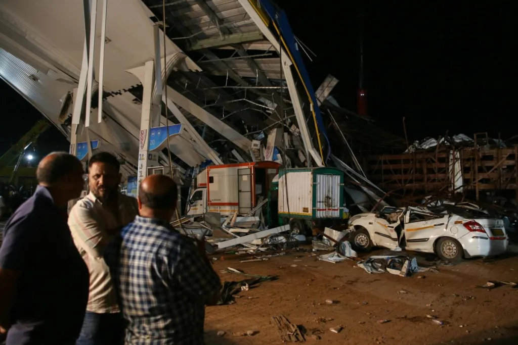 El incidente tuvo lugar el lunes, cuando un cartel de unos 30 metros de altura ubicado en el suburbio de Ghatkopar fue arrancado de cuajo por una tormenta de viento y cayó sobre un surtidor de gasolina, atrapando a decenas de personas.