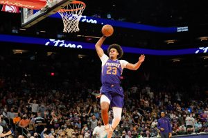El alero Cam Johnson logró su mejor marca como profesional al aportar 22 puntos, El pívot bahameño Deandre Ayton también tuvo 21 tantos y los Suns iniciaron con todo para extender su racha ganadora a 12 partidos consecutivos con paliza ante los Nuggets.