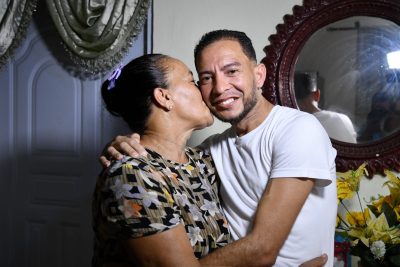 Ángel Luis y su madre Teófila, residentes en Santo Domingo Este, valoran como excelente el Programa de Medicamentos de Alto Costo, y agradecen su apoyo desde el inicio del proceso para realizar el trasplante.