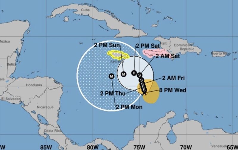 Por el momento, se mantiene una Vigilancia de Huracán para la península suroeste de Haití, desde la frontera con República Dominicana hasta Puerto Príncipe, y una Vigilancia de Tormenta Tropical para Jamaica.