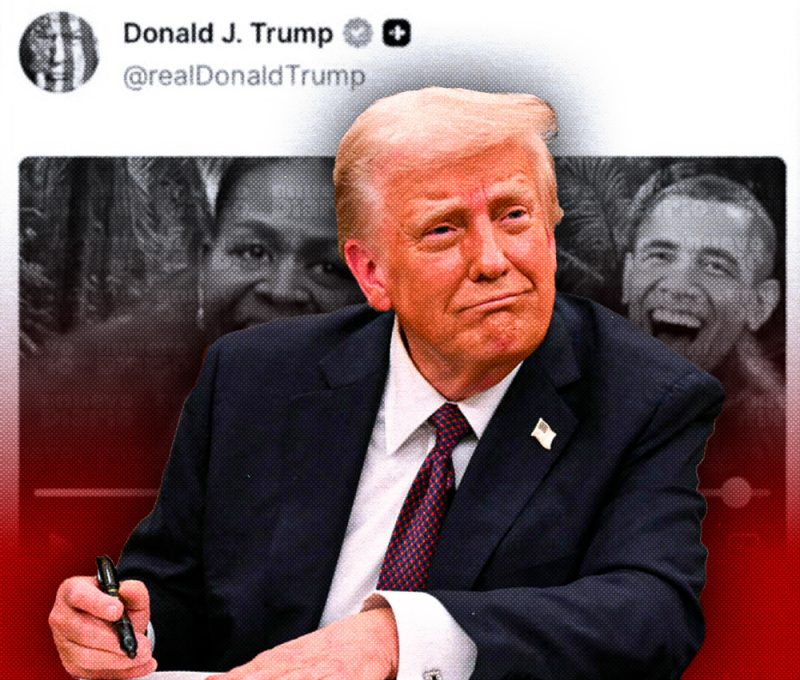 ESTADOS UNIDOS. – El presidente Donald Trump dijo el viernes que «no vio» la parte de un video que publicó en su red social en la que se mostraba al expresidente Barack Obama y a su esposa Michelle, como simios.