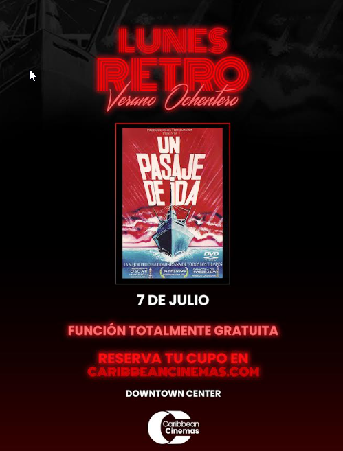 EL NUEVO DIARIO, SANTO DOMINGO.- Con miras a honrar la memoria del cineasta dominicano, Caribbean Cinemas proyectará este lunes 7 de julio Downtown Center (6:50 PM), una función gratuita, la emblemática película «Un pasaje de ida», dirigida por Agliberto Meléndez (1988).