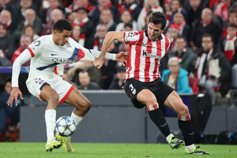 El choque arrancó equilibrado y sin ocasiones en los primeros minutos. Pero con un pulso de intensidad y rigor en el que los ‘leones’ no cedían ante el campeón de Europa, que apareció por el área de Simón con dos disparos sin opciones de Zaire-Emery y Joao Neves, el de esta un lanzamiento a balón parado que dio en la barrera.