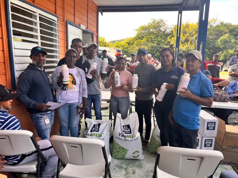 La iniciativa, impulsada por el agrónomo Frank Alejandro Herasme, director ejecutivo de la Utepda, busca fortalecer el desarrollo productivo y agroforestal en la zona. Se distribuyeron 1,690 quintales de fertilizante granulado, 413 litros de abono foliar, 875 litros de fungicidas y 330 litros de insecticidas.