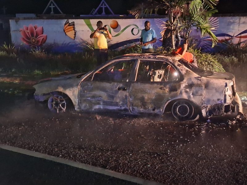EL NUEVO DIARIO, SAN PEDRO DE MACORÍS.- Un vehículo quedó completamente calcinado luego de incendiarse en plena avenida Hugo Chávez, justo frente al cementerio municipal de San Pedro de Macorís (SPM), un hecho registrado la noche del viernes.