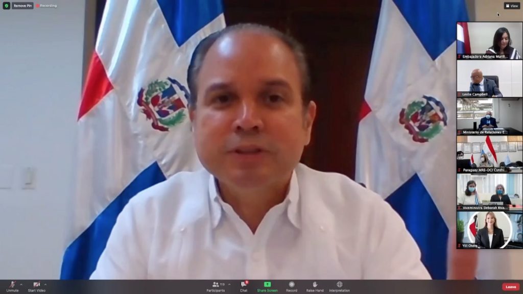 En representación del canciller @RobalsdqAlvarez, el viceministro para Asuntos Económicos y Cooperación Internacional, @hugofrivera participó en el diálogo de cancilleres y altas autoridades. pic.twitter.com/SiooqenR5j— Ministerio de Relaciones Exteriores R.Dominicana (@MIREXRD) August 20, 2021