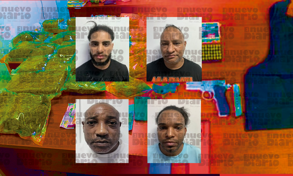 Durante las intervenciones fueron confiscadas 21 pacas de presunta marihuana, con un peso aproximado de 39.59 libras, una balanza digital, 6,200 pesos en efectivo, cuatro celulares, un chaleco antibalas, múltiples municiones, dos pistolas, una marca S&W, calibre 9 mm, serie No. THD6942 y otra marca no legible, calibre 9 mm, serie No. EFC-1490302, sin documentos.
