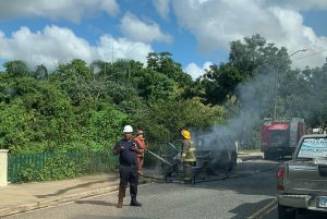 EL NUEVO DIARIO, SANTO DOMINGO.- Miembros del Cuerpo de Bomberos del Distrito Nacional sofocaron la mañana de este miércoles el incendiado de un vehículo en la avenida República de Argentina, en las proximidades del Jardín Botánico, en Arroyo Hondo.