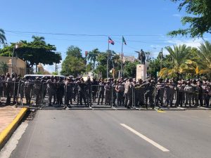 EL NUEVO DIARIO, SANTO DOMINGO.- Agentes de la Policía Nacional procedieron la mañana de este martes a cerrar la calle Doctor Delgado con la avenida Francia, tras aproximarse la protesta convocada por los veteranos de todo el país en demanda del pago del sueldo por años, indemnización por retiro, la atención a las viudas y por aumento general de salario tanto para los activos como para los retirados.